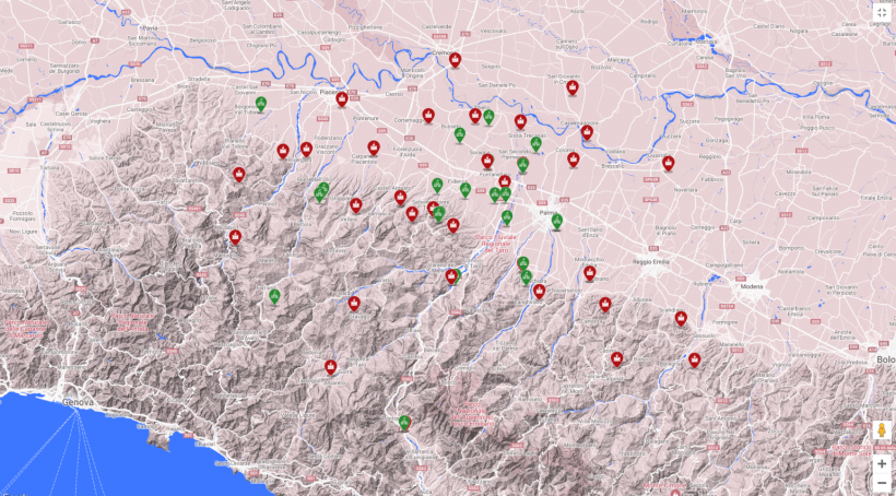 Mappa che rappresenta i principali borghi di interesse nel ducato di Parma