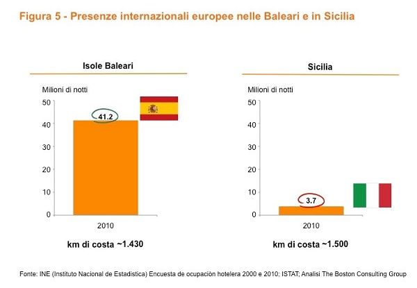 I dati e i grafici contenuti nel Piano seppure (per alcuni) scontati, sembrano utili. Il caso più emblematico citato dal Piano è quello relativo alla Sicilia. Il Piano ha effettuato un confronto con le Isole Baleari (Spagna) comparabili per chilometraggio di coste (ma non per grandezza, le Baleari sono grandi 1/5 della Sicilia), ma a quanto pare non certo per risultati.