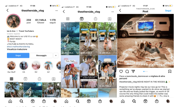 Nelle stories IG parlano di cosa fanno nel quotidiano, danno dei consigli e narrano le loro avventure nel mondo soffermandosi su curiosità, luoghi da visitare, la cultura del luogo ecc.