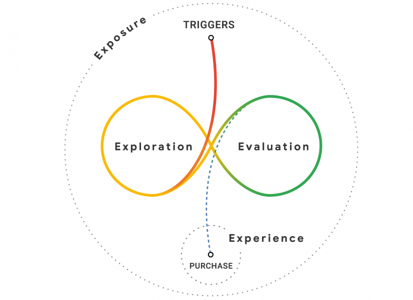 Tra lo stimolo e l’acquisto, gli acquirenti procedono percorrendo una rete di numerosi touchpoint (costituiti da motori di ricerca, siti di recensioni, social media, forum, gruppi di interesse, blog, siti dei vari prodotti).