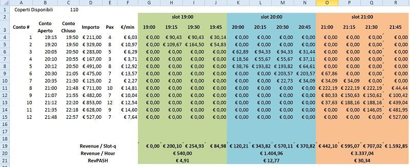 In questo modo si avrebbe una panoramica più precisa dell’evoluzione del RevPASH nel corso della cena o del pranzo e si potrebbero apportare le strategie più consone tendenti alla massimizzazione del fatturato.