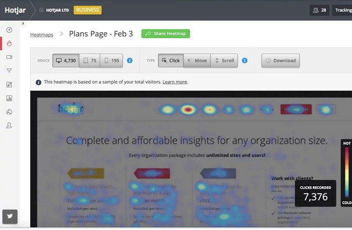 Indica sul sito o app quali sono le zone in cui l’utente passa più tempo, le aree più cliccate e la percentuale di pagina scrollata.