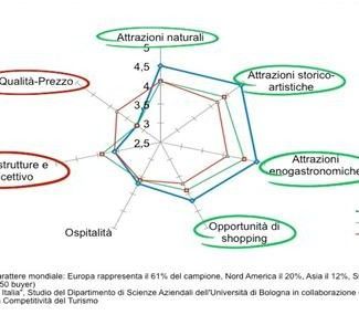 Chiudiamo questo viaggio nel Piano Strategico 2020 con il grafico che più ha colpito e fatto scalpore, quello riguardante il prodotto turistico italiano. Questa volta relazionato non solo alla Spagna, ma anche alla vicina Francia. Questo grafico è il più agghiacciante e mostra come il