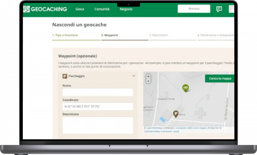 Una volta in posizione basterà inserire le coordinate che troverete nell’app di google maps nel sito Geocaching.