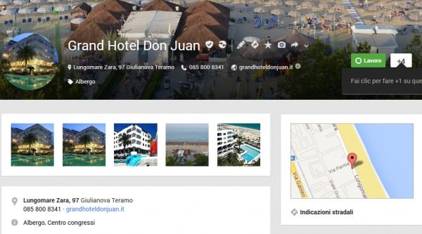 Esempio di una scheda Google+ Local del Grand Hotel Don Juan di Giulianova, allineata alla Pagina aziendale di Google +