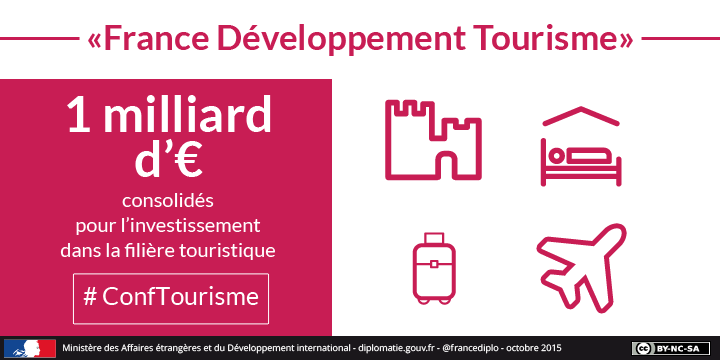 - la creazione di una piattaforma per gli investimenti il cui obiettivo è raccogliere 1 miliardo di euro in 5 anni per lo sviluppo del settore. Questa piattaforma, denominata France Développement Tourisme, sarà gestita dalla Caisse des Dépôts et Consignations (CDC) e interverrà prioritariamente a sostegno dei seguenti settori: ricettività, attrezzature e infrastrutture e imprese.