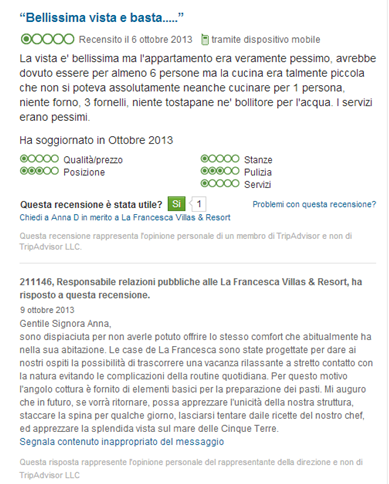 Vediamo un esempio di come rispondere ad una recensione negativa: