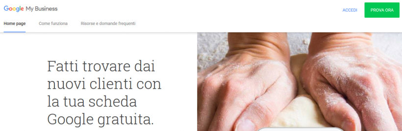 A questo punto accedi al tuo account Google, recati alla pagina Google My Business e clicca su “Prova ora” nell’angolo in alto a destra.