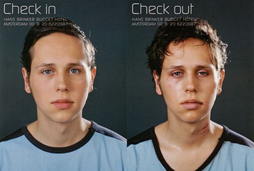 Vediamo qualche esempio partendo dalla campagna Check-in Check-out, con improbabili clienti, con un bel sorriso e curati al momento del check in, e assolutamente sconvolti al check out.