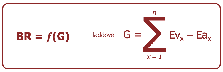 Il valore assunto dalla Brand Reputation di un prodotto/servizio, in definitiva, è funzione diretta del Giudizio (G) espresso da “n” clienti effettivi: al variare del Giudizio varierà il valore della Brand Reputation, tenendo ben presente che il Giudizio, nella sua complessità, altro non è che la sommatoria di giudizi espressi (da ogni singolo cliente) sulla base della differenza tra l’Esperienza vissuta (Ev) e l’Esperienza attesa (Ea).