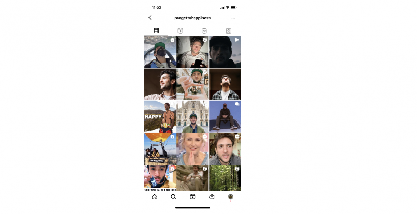 Un esempio rappresentativo è @progettohappiness che non segue un pattern specifico e mantiene una tavolozza di colori priva di eccessive saturazioni.
