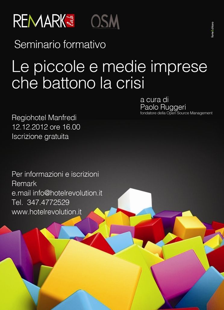 Si svolgerà a Manfredonia il prossimo 12 dicembre 2012 il Seminario formativo “Le piccole e medie imprese che battono la crisi”.