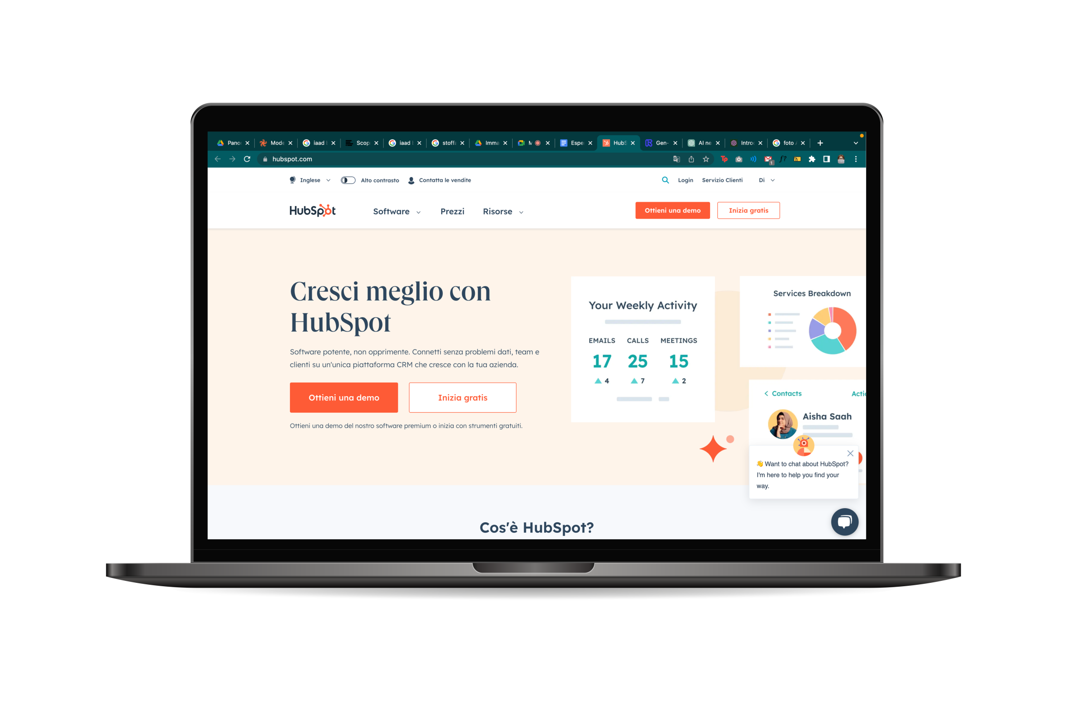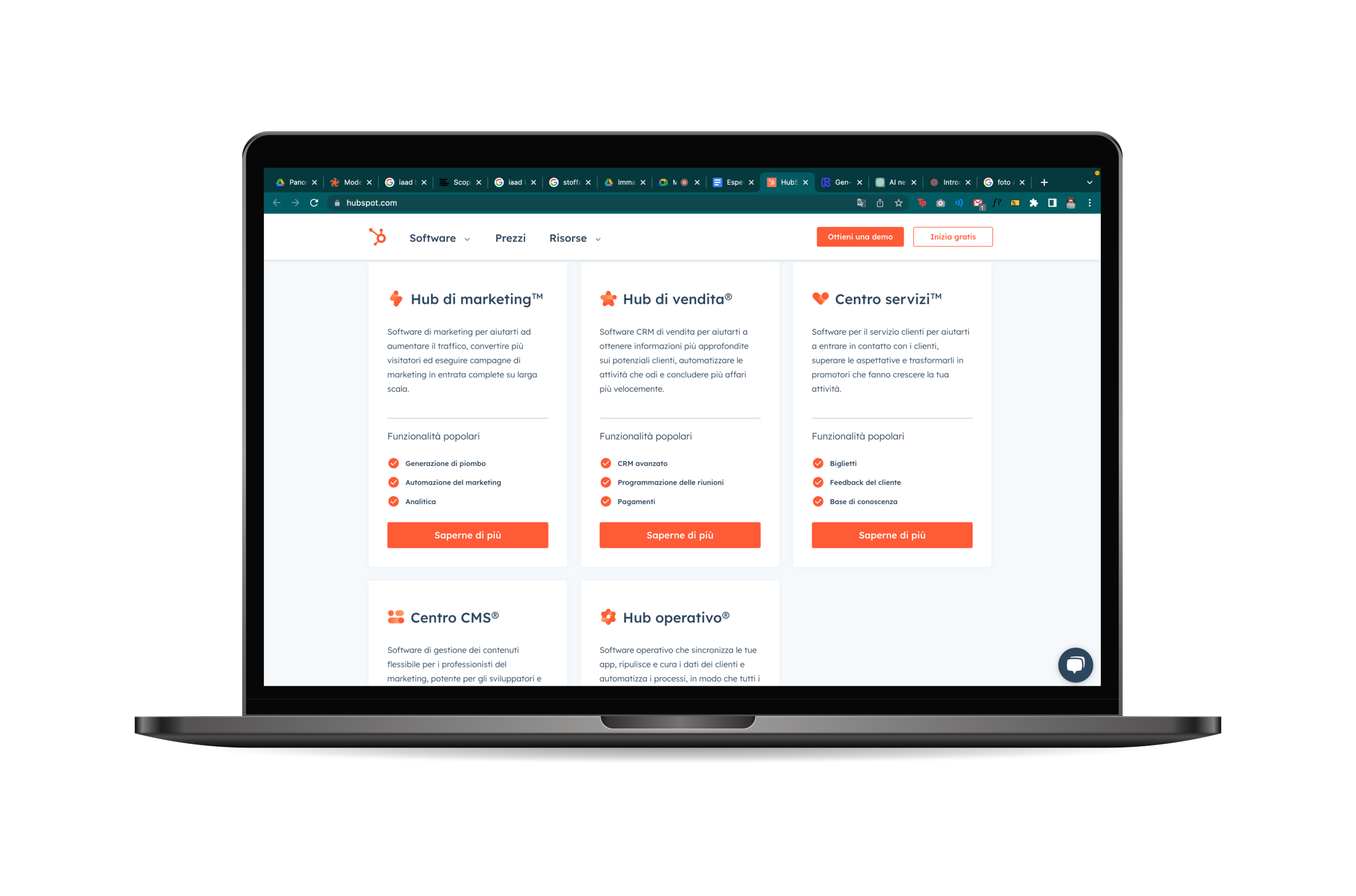 Hubspot è un software di marketing e vendite basato su cloud che si occupa di supportare le aziende a gestire ed automatizzare le attività di marketing, vendite e servizio clienti.