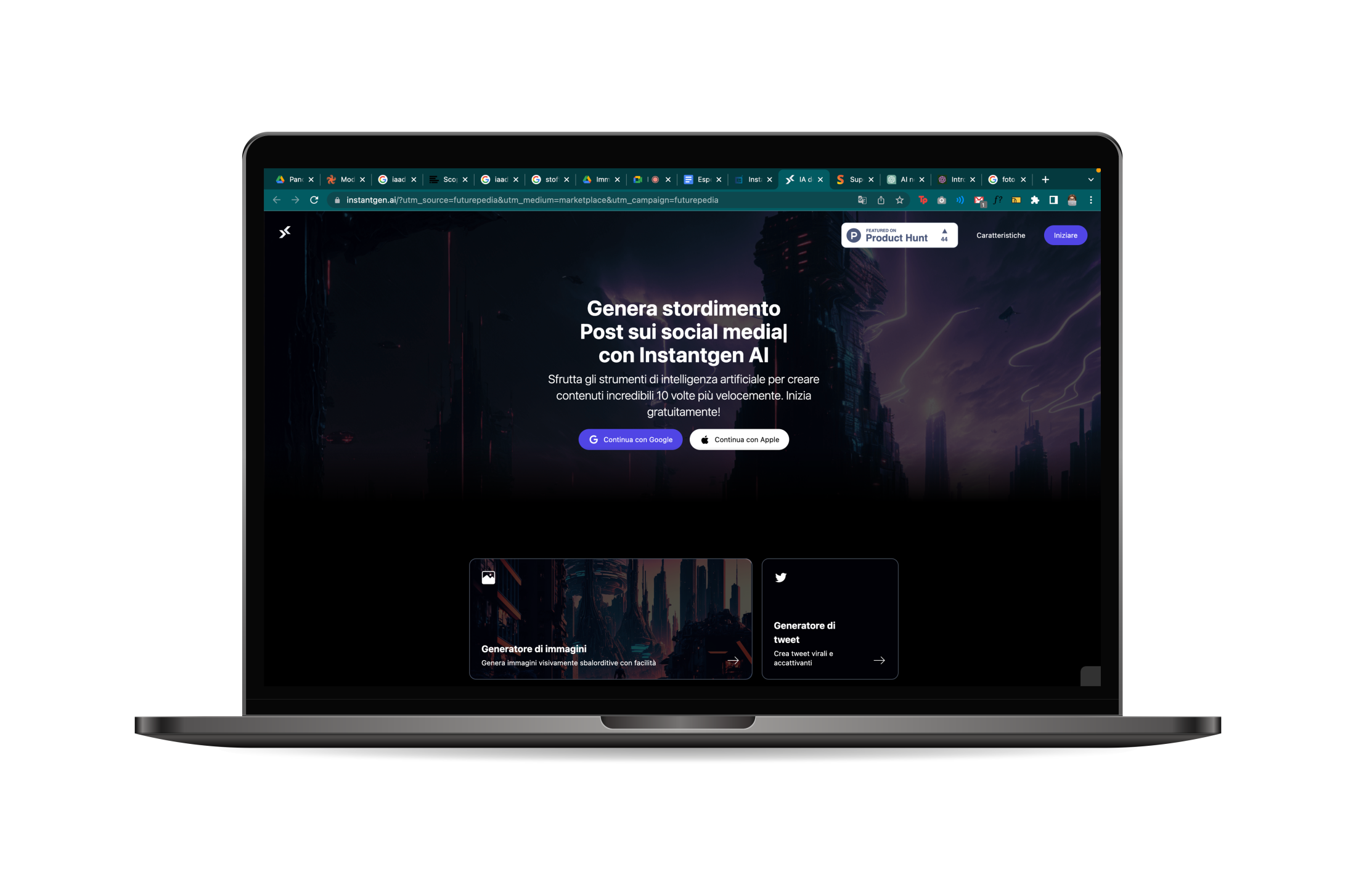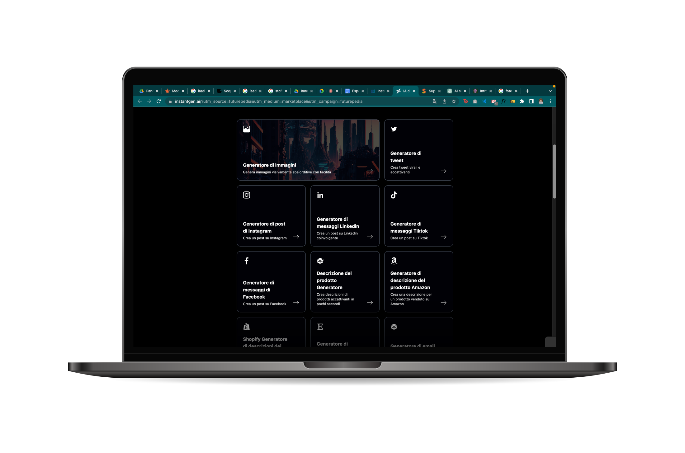 Usando Instantgen.ai si ha la possibilità di creare dei contenuti come immagini e testi in maniera semplice, efficace e economica, velocizzando quindi il processo di immagini, editing, pubblicazione e copywriting per canali social e sito web.