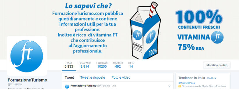 FormazioneTurismo dalla settimana prossima rinnoverà il proprio canale Twitter. Dalla grafica della pagina alla struttura stessa dei tweet pubblicati.